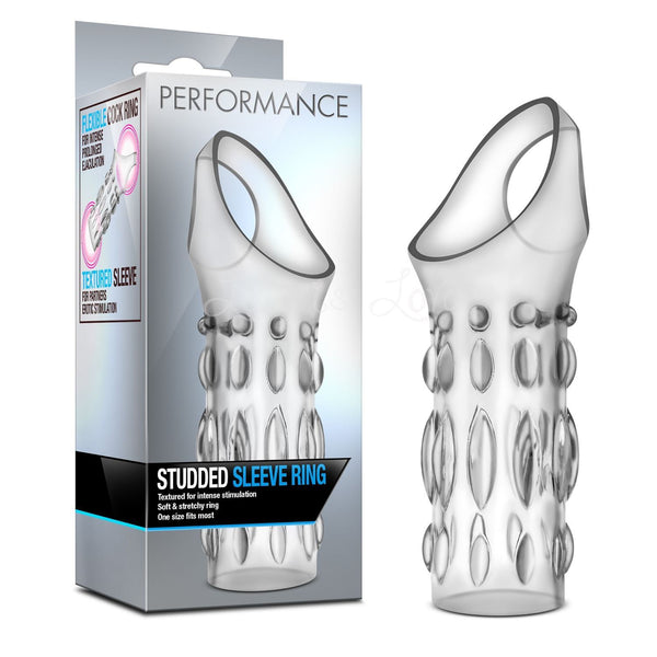 Make your rod into the ultimate sex toy with the Blush Novelties Performance Studded Sleeve Ring Clear!