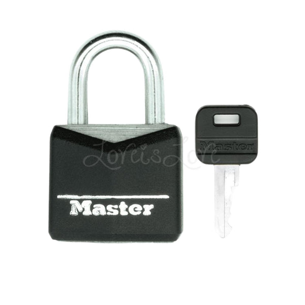 Black plastic coated Master Lock with ONE key. Replacement or spare lock for CB-X® chastity devices.