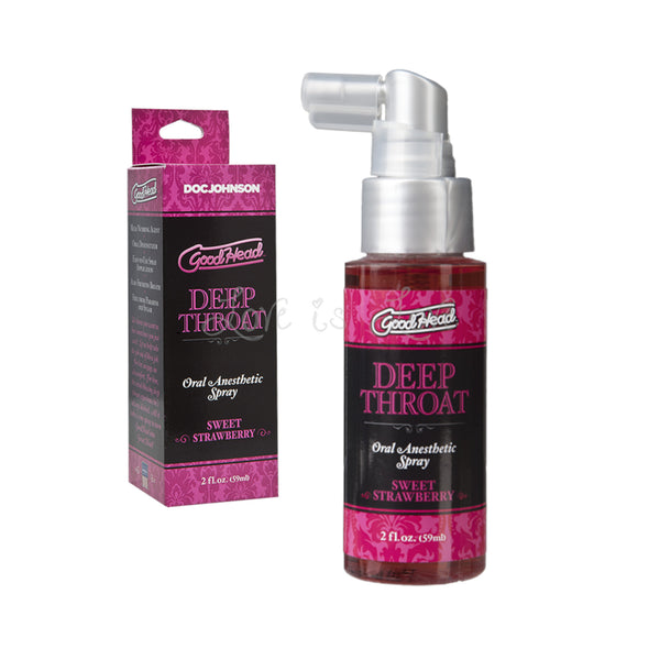 Doc Johnson GoodHead Deep Throat Oral Spray is an oral anesthetic that contains a mild numbing agent.