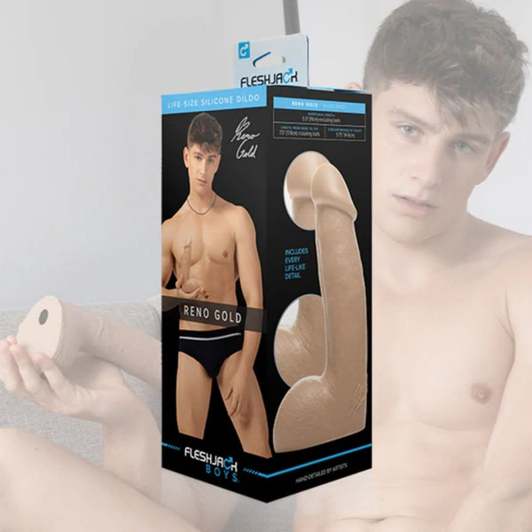 Reno Gold has got it all – he’s hot, cut, and flexible as f*ck! He has a pretty spectacular cock, too. His best features go beyond just a perfect jawline and ripped muscular build - his incredibly long and girthy cock is guaranteed to get you off. Made with the highest quality, platinum cured silicone, this Fleshjack Boy’s dick can now be yours!