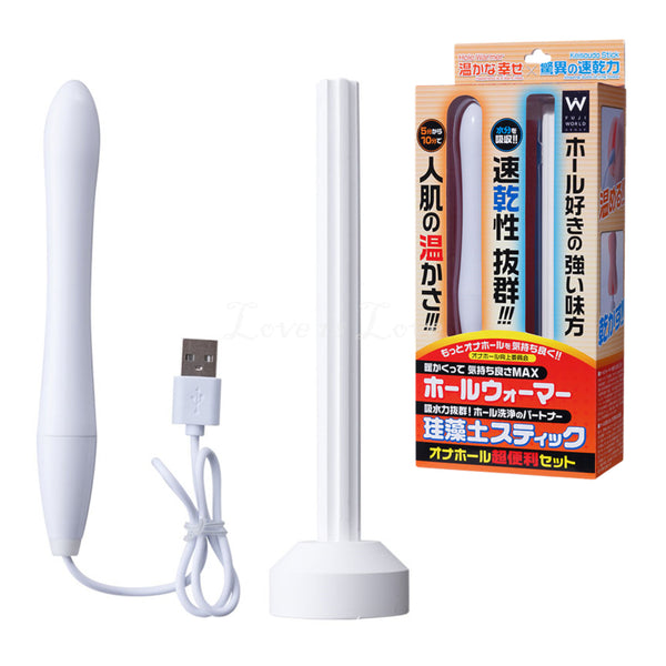 This Japan Onahole Hole Warmer and Drying Stick Set will provide you with warm one hole pleasure, and keep your collection in dry sanitary condition.