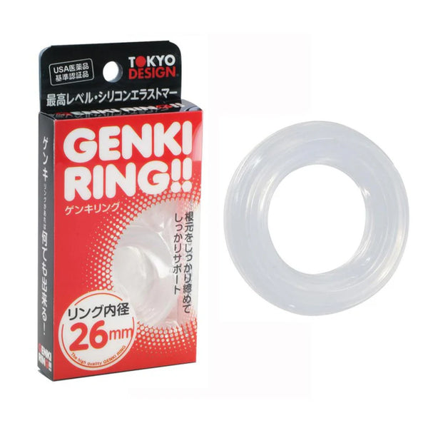 The Japan Tokyo Design Genki Cock Ring Clear is ultra thick and textured, and instantly increases girth, while providing stamina support for a rock hard erection that goes the distance. The totally seamless supportive ring comfortably glides on to the erect penis, for extended intimate fun and an unforgettable explosive finish every time. Experience super-sized erotic pleasure and share the tantalizing sensations with your lover.