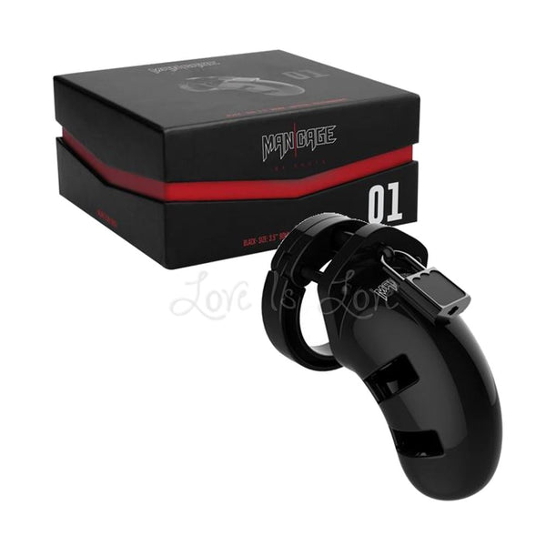 The Man|Cage Chastity Cages are manufactured from high-grade polycarbonate, a very light, durable and hypoallergenic material. The cage consists of three parts which fit perfectly together. The two guidance pins connect the top parts and the oval taper pin connects the rings with the cage. A variety of rings in different sizes and distance pieces will allow you to create the perfect size! The rings have a comfortable fit and are absolutely safe. A metal lock or tie-wrap lock closes the cage easily. The included tie-wrap locks ensure that they will not trigger the alarm of metal detectors at parties, festivals or even airports! As hygiene is very important while wearing a cage, the superior ManCage series are equipped with a variety of vents and a urination opening. The cage makes it impossible to get an erection but it will be, after liberation, super intense, just like the freeing orgasm to follow! The ManCage Chastity Cage gives the key-holder total power over sexual gratification!