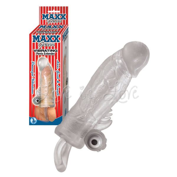 Fitting snugly over the tip and shaft, the Nasstoys Maxx Gear Vibrating Penis Extender design allows for just enough sensation below a full coverage tip that adds a full inch of length. Embedded in that extender tip and fully removable vibe that responds naturally to thrusts, buzzing subtly in response.