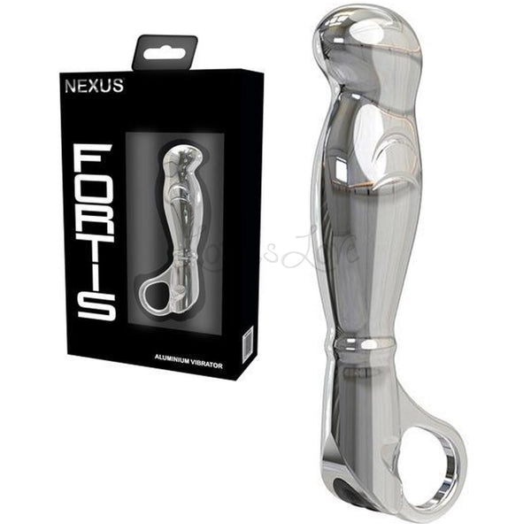 Nexus Fortis Aluminium Vibrating Prostate Massager expertly combines metal and vibration. Sculpted from aluminium it is contoured perfectly for G spot and P spot stimulation. It houses a 6 function motor inside to deliver powerful vibrations. It's waterproof so also perfect for temperature play, simply run under hot or cold water