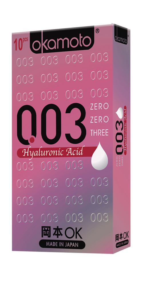 Hyaluronic Acid is widely used on cosmetic products for moisturizing. Okamoto is the first condom manufacturer to add this ingredient into lubricant to enhance the moisturizing feature during intercourse.