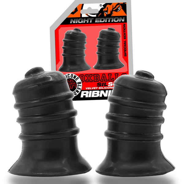 OXBALLS new RIBNIPS curved springy NIGHT EDITION nipsucks in our lushest SILSOFT SILICONE blend, in deep dark velvet-black color—a grippy super-stretchy rubber for the hardest, darkest-night play.