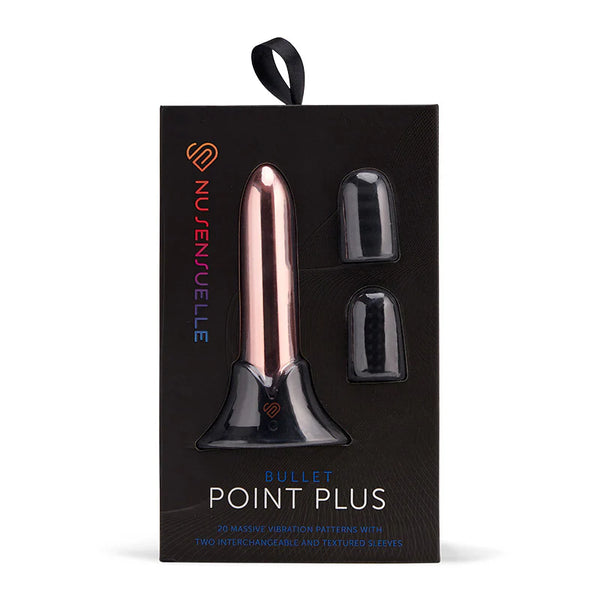 Make room in your bedside drawer because your favorite bullet just got that much better. Meet the Nu Sensuelle Point Plus Bullet with Textured Sleeves: 20 heavenly vibrations, but with 40% more power than the Point.