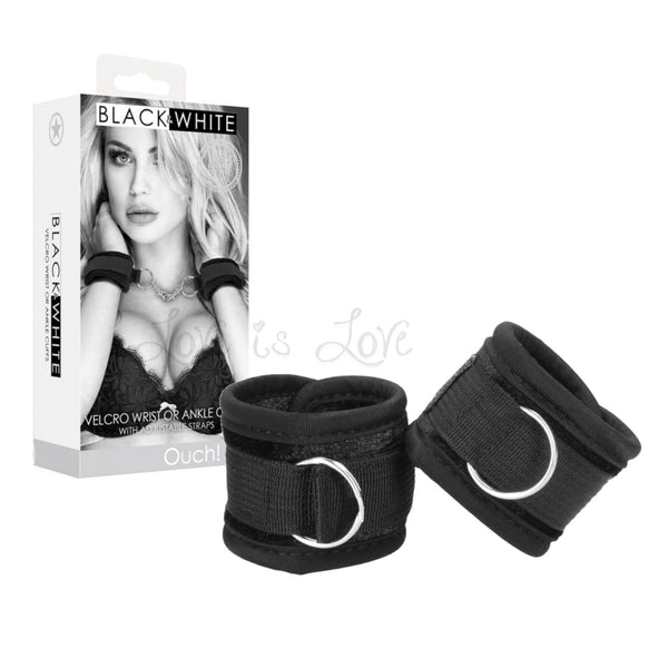 Add a touch of elegance to your bondage play with the Shots Ouch! Black & White Velcro Wrist or Ankle Cuffs. This lovely set of cuffs can be attached at the wrists or ankles. Explore all of the fantasies you have been thinking of!