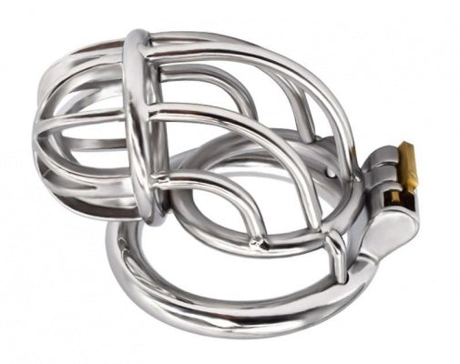 Show your submissiveness with this Stainless Steel New Bent Chastity Silver Cock Cage #46 with 45 mm Ring!