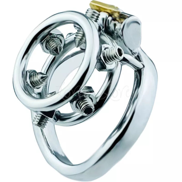 Show your love for S&M with this pointy screws embedded chastity cage!