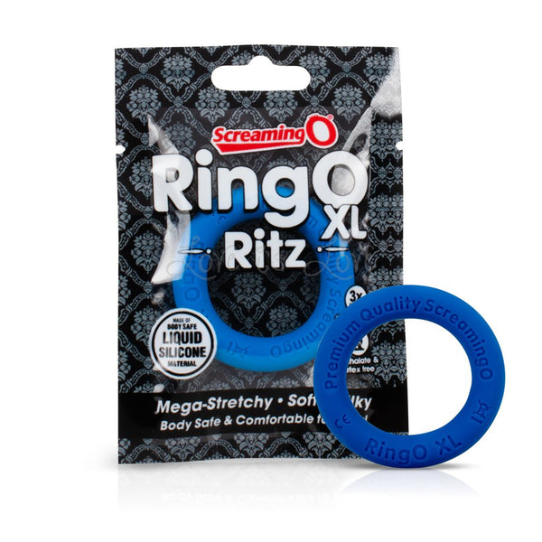 The Screaming O RingO Ritz Cock Ring Blue XL is phthalate and latex free, premium body-safe liquid silicone is easy to care for with soap and warm water and will keep its texture and shape for years of enjoyment.