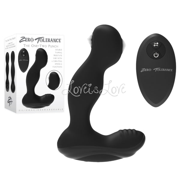 Rolling with the punches never felt this good! With two thumping motors on either side of its bulbous tip, this prostate pleaser taps the P-spot directly and also behind for a thunderous sensation that leads to an intense release. The smooth gloss black finish slips in like a dream with plenty of lube, and the remote control allows hands-free or partner play, even underwater as it’s completely submersible. Knock yourself out with the 1-2 punch of orgasms like you’ve never experienced! Clean with toy cleaner and a warm water.