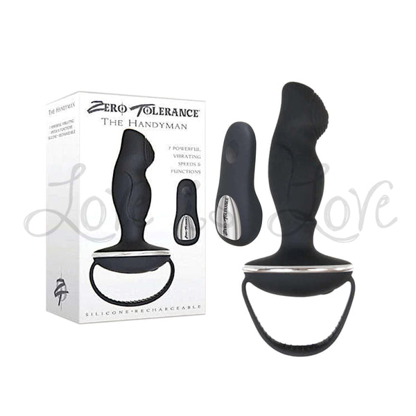 Men love their tools, and this powerful P-spot stimulator, the Zero Tolerance The Handyman Vibrating Prostate Massager, is no exception! With 7 mind-blowing speeds and a textured shaft and tip, its gentle curves are designed to reach the prostate effortlessly. Prostate orgasms are one of the most intensely pleasurable experiences a man can have, and the right device is key to tapping into that extraordinary feeling. The remote control works up to 50 ft away, or you can control the toy directly while you enjoy the ergonomic hand grip and strap.