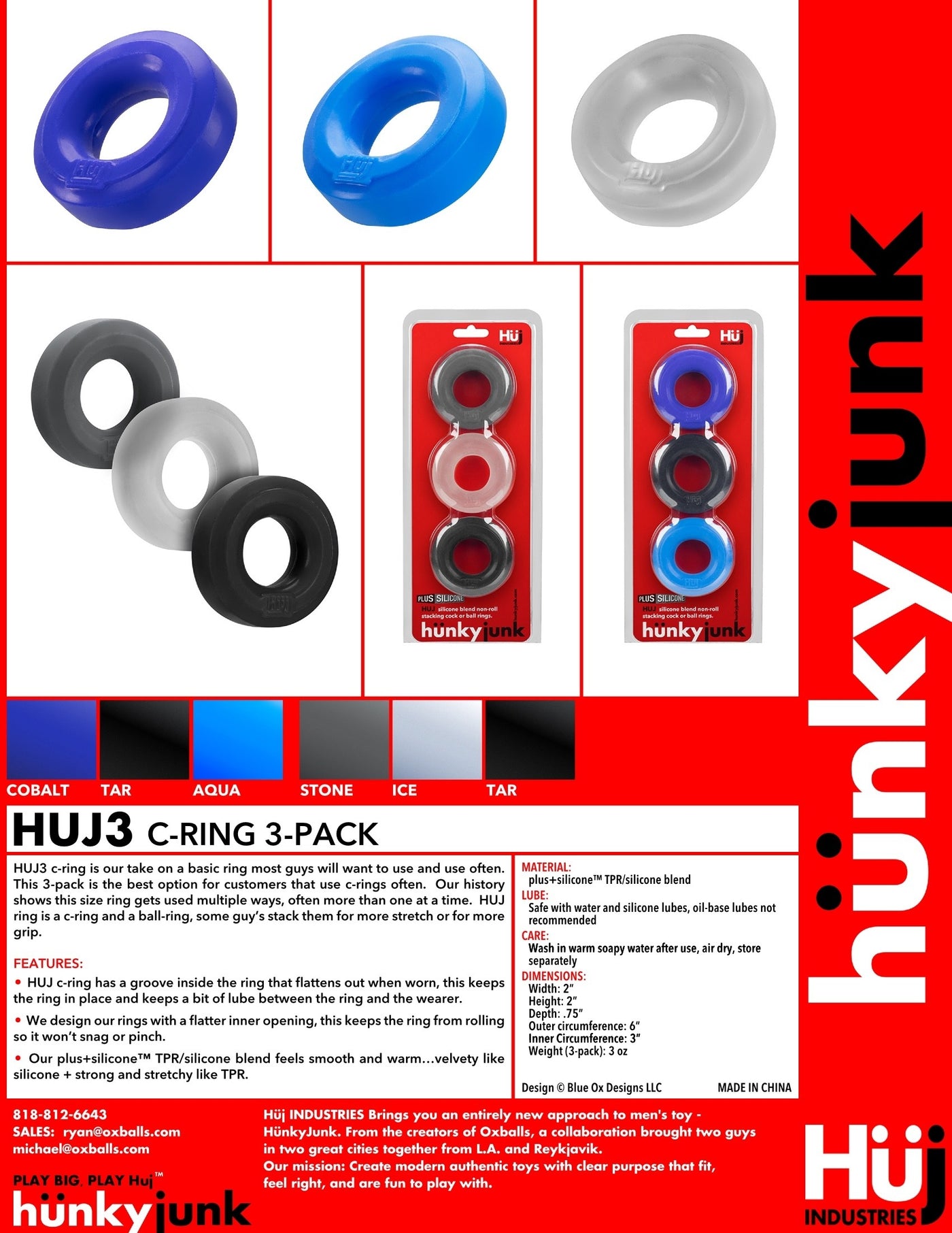 {"id":1716606435399,"title":"Oxballs Hunkyjunk Huj3 Plus Silicone C-Ring 3-Pack","handle":"oxballs-hunkyjunk-huj3-c-ring-3-pack-tar-multi","description":"Oxballs Hunkyjunk Huj3 C-Ring 3-Pack Tar Multi is our favorite grippy ring you will want to use and use often-just the right size, it’s the perfect c-ring or ball-ring that stretches to fit all sizes. Our Oxballs Hunkyjunk Huj3 is a 3-pack of c-rings for more creative play.\u003cbr\u003e\u003cbr\u003eHunkyjunk innovates even in this simple design, HUJ3 c-ring has a groove inside the ring that flattens out when worn, this keeps the ring in place and keeps a bit of lube between the ring and you for comfort, HUJ3 c-ring has a flatter inner opening so it wont roll, snag or pinch.\u003cbr\u003e\u003cbr\u003eHunkyjunk toys are made of plus+silicone, a durable blend of TPR for strength \u0026amp; soft silicone for a smooth, warm feel. \u003cbr\u003e\u003cbr\u003eProduct Features: \u003cbr\u003e\n\u003cul\u003e\n\u003cli\u003eSmooth material\u003c\/li\u003e\n\u003cli\u003eGet the support you need for the ultimate thrilling orgasm\u003c\/li\u003e\n\u003cli\u003eEnjoy a stronger, harder, longer lasting erection\u003c\/li\u003e\n\u003cli\u003eSuper stretchy and tough\u003c\/li\u003e\n\u003cli\u003eOne size fits most\u003c\/li\u003e\n\u003cli\u003eCan be worn at base of penis or behind the balls\u003c\/li\u003e\n\u003cli\u003ePhthalate free\u003c\/li\u003e\n\u003c\/ul\u003e\nProduct Details: \u003cbr\u003e\n\u003cul\u003e\n\u003cli\u003eColor: Tar Multi or Blue Multi\u003cbr\u003e\n\u003c\/li\u003e\n\u003cli\u003eMaterial: plus+Silicone (TPR + soft silicone blend)\u003c\/li\u003e\n\u003cli\u003eOuter Diameter (Product): 50mm (1.9\")\u003c\/li\u003e\n\u003cli\u003eInner Diameter (Product): 23mm (0.9\")\u003c\/li\u003e\n\u003cli\u003eWeight (Include Package): 88g (3.10oz)\u003c\/li\u003e\n\u003c\/ul\u003e\n\u003cp\u003e\u003cem\u003e\u003cstrong\u003e\u003cspan\u003eMaterial Note: The material has several natural mold-lines and creases slightly on the surface. This is all part of the manufacturing process. Not noticeable and does not spoil the overall aesthetic. The material does have a whiff of odor but is non-toxic and body-safe. Use only water-based lubricant. Use\u003ca title=\"Renewing powder for all toys. Keep humidity out of toys\" href=\"https:\/\/www.loveislove.com.sg\/products\/fleshlight-renewing-powder?_pos=1\u0026amp;_sid=c7ee978b0\u0026amp;_ss=r\"\u003e renewing powder\u003c\/a\u003e to keep this in dry condition. Due to the humidity level, store in a breathable \u003ca href=\"https:\/\/www.loveislove.com.sg\/collections\/lubes-toy-cleaners-toy-care\"\u003ecotton bag\/material after powdering\u003c\/a\u003e. Do not put inside plastic bag.\u003c\/span\u003e\u003c\/strong\u003e\u003c\/em\u003e\u003c\/p\u003e","published_at":"2026-02-14T14:11:08+08:00","created_at":"2019-04-24T14:39:25+08:00","vendor":"Oxballs","type":"Cock Rings - Oxballs C\u0026B Toys","tags":["Ball Dividers\/Stretchers","Cock \u0026 Ball Gear","Cock Ring Sets","Cock Rings","Oxballs C\u0026B Toys","oxballs series","Stretchy Cock Rings"],"price":2900,"price_min":2900,"price_max":2910,"available":true,"price_varies":true,"compare_at_price":4390,"compare_at_price_min":4390,"compare_at_price_max":4390,"compare_at_price_varies":false,"variants":[{"id":47845496029500,"title":"Cobalt Multi","option1":"Cobalt Multi","option2":null,"option3":null,"sku":"u4-oxb-840215120069","requires_shipping":true,"taxable":false,"featured_image":{"id":43764261191996,"product_id":1716606435399,"position":1,"created_at":"2023-10-19T18:43:47+08:00","updated_at":"2023-10-24T20:18:02+08:00","alt":null,"width":2500,"height":2500,"src":"\/\/www.loveislove.com.sg\/cdn\/shop\/files\/Hunkyjunk_huj_3_cockrings_cob-tar-aqua_01.jpg?v=1698149882","variant_ids":[47845496029500]},"available":false,"name":"Oxballs Hunkyjunk Huj3 Plus Silicone C-Ring 3-Pack - Cobalt Multi","public_title":"Cobalt Multi","options":["Cobalt Multi"],"price":2910,"weight":93,"compare_at_price":4390,"inventory_quantity":0,"inventory_management":"shopify","inventory_policy":"deny","barcode":"840215120069 h only have blue 25.9 de","featured_media":{"alt":null,"id":36327371866428,"position":1,"preview_image":{"aspect_ratio":1.0,"height":2500,"width":2500,"src":"\/\/www.loveislove.com.sg\/cdn\/shop\/files\/Hunkyjunk_huj_3_cockrings_cob-tar-aqua_01.jpg?v=1698149882"}},"requires_selling_plan":false,"selling_plan_allocations":[]},{"id":47845495996732,"title":"Tar Multi","option1":"Tar Multi","option2":null,"option3":null,"sku":"u4-oxb-840215120052","requires_shipping":true,"taxable":false,"featured_image":{"id":29045697249351,"product_id":1716606435399,"position":12,"created_at":"2022-10-15T19:34:40+08:00","updated_at":"2023-10-24T20:18:02+08:00","alt":"Oxballs Hunkyjunk Huj3 Plus Silicone C-Ring 3-Pack Tar Multi","width":750,"height":750,"src":"\/\/www.loveislove.com.sg\/cdn\/shop\/products\/huj-3-pk-cockrings-pkg-hunkyjunk-stone-ice-tar.jpg?v=1698149882","variant_ids":[47845495996732]},"available":true,"name":"Oxballs Hunkyjunk Huj3 Plus Silicone C-Ring 3-Pack - Tar Multi","public_title":"Tar Multi","options":["Tar Multi"],"price":2900,"weight":93,"compare_at_price":4390,"inventory_quantity":2,"inventory_management":"shopify","inventory_policy":"deny","barcode":"840215120052 h multi blue in 26","featured_media":{"alt":"Oxballs Hunkyjunk Huj3 Plus Silicone C-Ring 3-Pack Tar Multi","id":21375195480135,"position":12,"preview_image":{"aspect_ratio":1.0,"height":750,"width":750,"src":"\/\/www.loveislove.com.sg\/cdn\/shop\/products\/huj-3-pk-cockrings-pkg-hunkyjunk-stone-ice-tar.jpg?v=1698149882"}},"requires_selling_plan":false,"selling_plan_allocations":[]}],"images":["\/\/www.loveislove.com.sg\/cdn\/shop\/files\/Hunkyjunk_huj_3_cockrings_cob-tar-aqua_01.jpg?v=1698149882","\/\/www.loveislove.com.sg\/cdn\/shop\/files\/Hunkyjunk_huj_3_cockrings_cob-tar-aqua_02.jpg?v=1698149882","\/\/www.loveislove.com.sg\/cdn\/shop\/files\/Hunkyjunk_huj_3_cockr