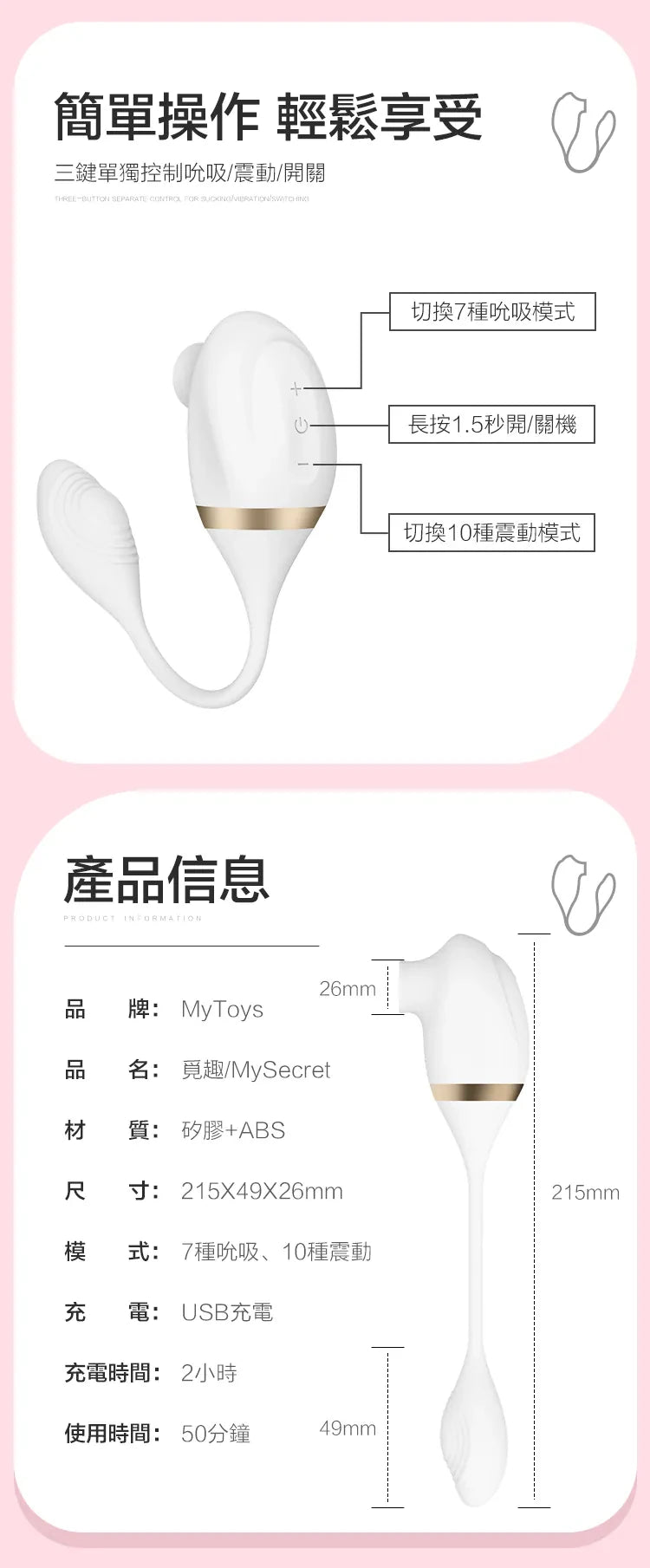 {"id":10283508891964,"title":"MyToys MySmartSecret or MySmartSecret Finger App-Controlled Clit Suction and Vibration","handle":"mytoys-mysmartsecret-or-mysmartsecret-finger-app-controlled-clit-suction-and-vibration","description":"\u003cp data-path-to-node=\"3\"\u003e\u003cb data-index-in-node=\"0\" data-path-to-node=\"3\"\u003eUnlock a world of connected pleasure with the MyToys MySmartSecret series.\u003c\/b\u003e Whether you choose the unique rhythmic tapping of the \u003cb data-index-in-node=\"129\" data-path-to-node=\"3\"\u003eMySmartSecret Finger\u003c\/b\u003e or the targeted power of the \u003cb data-index-in-node=\"179\" data-path-to-node=\"3\"\u003eMySmartSecret (Vibrating Egg)\u003c\/b\u003e, you are in for a revolutionary experience. Both devices are powered by dual motors and controlled via the \"Monsterparty\" App, allowing you to explore custom patterns, music-synced pulses, and long-distance play from anywhere in the world.\u003c\/p\u003e\n\u003cp data-path-to-node=\"4\"\u003eCrafted from premium, body-safe silicone with a sleek white finish, these devices combine intense clitoral suction with internal stimulation. With IPX6 waterproofing and whisper-quiet operation, your secrets are safe—even in the bath.\u003c\/p\u003e\n\u003cp data-path-to-node=\"6\"\u003e\u003cb data-index-in-node=\"0\" data-path-to-node=\"6\"\u003eMySmartSecret Finger (Finger Motion + Suction)\u003c\/b\u003e The \"Finger\" model features a specialized internal tip designed to mimic a beckoning \"come-hither\" finger motion. While the suction mouth pampers your clitoris, the internal arm provides 10 rhythmic tapping patterns against your G-spot for a life-like sensation.\u003c\/p\u003e\n\u003cul data-path-to-node=\"7\"\u003e\n\u003cli\u003e\n\u003cp data-path-to-node=\"7,0,0\"\u003e\u003cb data-index-in-node=\"0\" data-path-to-node=\"7,0,0\"\u003eFeatures:\u003c\/b\u003e 7 Suction modes \u0026amp; 10 Finger-like motion patterns.\u003c\/p\u003e\n\u003c\/li\u003e\n\u003cli\u003e\n\u003cp data-path-to-node=\"7,1,0\"\u003e\u003cb data-index-in-node=\"0\" data-path-to-node=\"7,1,0\"\u003eSize:\u003c\/b\u003e 279 x 42 x 49 mm (Main unit) | 78 x 24 mm (Finger tip).\u003c\/p\u003e\n\u003c\/li\u003e\n\u003c\/ul\u003e\n\u003cp data-path-to-node=\"8\"\u003e\u003cb data-index-in-node=\"0\" data-path-to-node=\"8\"\u003eMySmartSecret (Vibrating Egg + Suction)\u003c\/b\u003e This classic vibrating egg is reimagined with a powerful clitoral suction mouth. It delivers a unique combination of rhythmic vacuum pulses and deep internal vibrations, perfect for those who want simultaneous external and internal stimulation.\u003c\/p\u003e\n\u003cul data-path-to-node=\"9\"\u003e\n\u003cli\u003e\n\u003cp data-path-to-node=\"9,0,0\"\u003e\u003cb data-index-in-node=\"0\" data-path-to-node=\"9,0,0\"\u003eFeatures:\u003c\/b\u003e 7 Suction modes \u0026amp; 10 Vibration patterns.\u003c\/p\u003e\n\u003c\/li\u003e\n\u003cli\u003e\n\u003cp data-path-to-node=\"9,1,0\"\u003e\u003cb data-index-in-node=\"0\" data-path-to-node=\"9,1,0\"\u003eSize:\u003c\/b\u003e 215 x 49 x 26 mm.\u003c\/p\u003e\n\u003c\/li\u003e\n\u003c\/ul\u003e\n\u003cp data-path-to-node=\"10\"\u003e\u003cb data-index-in-node=\"0\" data-path-to-node=\"10\"\u003eProduct Features:\u003c\/b\u003e\u003c\/p\u003e\n\u003cul data-path-to-node=\"11\"\u003e\n\u003cli\u003e\n\u003cp data-path-to-node=\"11,0,0\"\u003e\u003cb data-index-in-node=\"0\" data-path-to-node=\"11,0,0\"\u003eDual Motor Power:\u003c\/b\u003e Independent motors dedicated to clitoral suction and internal stimulation (vibration or motion).\u003c\/p\u003e\n\u003c\/li\u003e\n\u003cli\u003e\n\u003cp data-path-to-node=\"11,1,0\"\u003e\u003cb data-index-in-node=\"0\" data-path-to-node=\"11,1,0\"\u003eMonsterparty App Integration:\u003c\/b\u003e Available on Google Play and App Store. Features infinite play modes, remote control, and interactive functions.\u003c\/p\u003e\n\u003c\/li\u003e\n\u003cli\u003e\n\u003cp data-path-to-node=\"11,2,0\"\u003e\u003cb data-index-in-node=\"0\" data-path-to-node=\"11,2,0\"\u003eIPX6 Waterproof:\u003c\/b\u003e Fully splash-proof and easy to clean under running water.\u003c\/p\u003e\n\u003c\/li\u003e\n\u003cli\u003e\n\u003cp data-path-to-node=\"11,3,0\"\u003e\u003cb data-index-in-node=\"0\" data-path-to-node=\"11,3,0\"\u003ePremium Materials:\u003c\/b\u003e Made of ultra-smooth, medical-grade silicone and ABS for a body-safe, luxurious feel.\u003c\/p\u003e\n\u003c\/li\u003e\n\u003cli\u003e\n\u003cp data-path-to-node=\"11,4,0\"\u003e\u003cb data-index-in-node=\"0\" data-path-to-node=\"11,4,0\"\u003eQuiet Operation:\u003c\/b\u003e Discreet motor technology operates between 50–60 dB.\u003c\/p\u003e\n\u003c\/li\u003e\n\u003cli\u003e\n\u003cp data-path-to-node=\"11,5,0\"\u003e\u003cb data-index-in-node=\"0\" data-path-to-node=\"11,5,0\"\u003eUSB Rechargeable:\u003c\/b\u003e Enjoy 50 minutes of continuous play from a 2-hour charge.\u003c\/p\u003e\n\u003c\/li\u003e\n\u003c\/ul\u003e\n\u003cp data-path-to-node=\"12\"\u003e\u003cb data-index-in-node=\"0\" data-path-to-node=\"12\"\u003eProduct Details:\u003c\/b\u003e\u003c\/p\u003e\n\u003cul data-path-to-node=\"13\"\u003e\n\u003cli\u003e\n\u003cp data-path-to-node=\"13,0,0\"\u003e\u003cb data-index-in-node=\"0\" data-path-to-node=\"13,0,0\"\u003eColor:\u003c\/b\u003e White\u003c\/p\u003e\n\u003c\/li\u003e\n\u003cli\u003e\n\u003cp data-path-to-node=\"13,1,0\"\u003e\u003cb data-index-in-node=\"0\" data-path-to-node=\"13,1,0\"\u003eCharging Time:\u003c\/b\u003e 2 Hours\u003c\/p\u003e\n\u003c\/li\u003e\n\u003cli\u003e\n\u003cp data-path-to-node=\"13,2,0\"\u003e\u003cb data-index-in-node=\"0\" data-path-to-node=\"13,2,0\"\u003eRun Time:\u003c\/b\u003e 50 Minutes\u003c\/p\u003e\n\u003c\/li\u003e\n\u003cli\u003e\n\u003cp data-path-to-node=\"13,3,0\"\u003e\u003cb data-index-in-node=\"0\" data-path-to-node=\"13,3,0\"\u003eWaterproof Rating:\u003c\/b\u003e IPX6\u003c\/p\u003e\n\u003c\/li\u003e\n\u003cli\u003e\n\u003cp data-path-to-node=\"13,4,0\"\u00