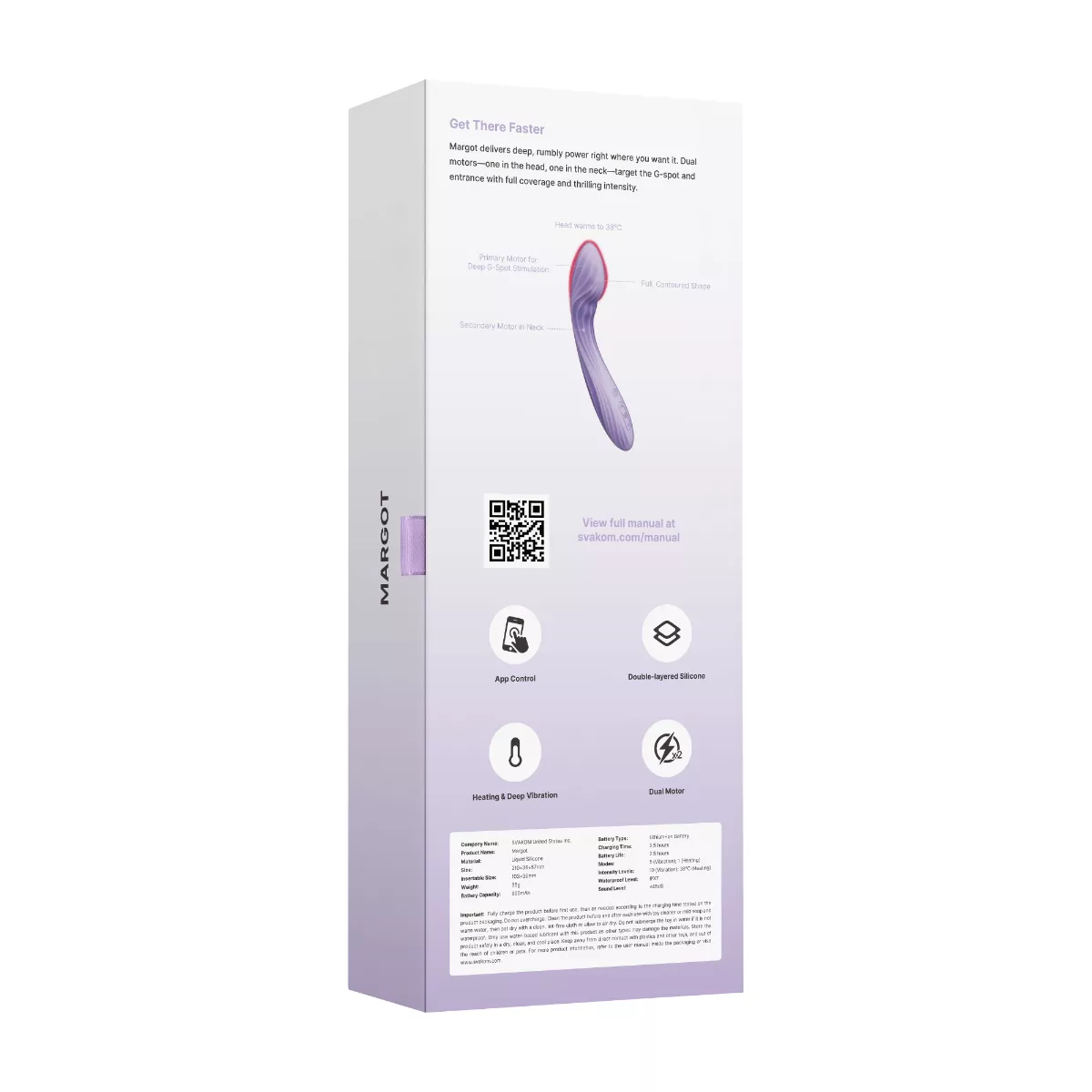 {"id":10279481704764,"title":"Svakom Margot App-Controlled Heating G-Spot Vibrator Lilac Swirl","handle":"svakom-margot-app-controlled-heating-g-spot-vibrator-lilac-swirl","description":"\u003cp\u003e\u003cstrong\u003eSoft, warm, and designed for deep delight, Margot is built for slow, blended pleasure—or getting there right now.\u003c\/strong\u003e Featuring a dual-motor system and a heated shaft with a broad, angled head, Margot provides a full-body internal massage that hits every spot. Its luxuriously soft silicone body amplifies every sensation, wrapping you in comfort as waves of pleasure flow seamlessly between motors, mimicking the natural rhythm of climax.\u003c\/p\u003e\n\u003cp\u003eWhether you are teasing your way to release or hitting top speed with the instant intensity boost, Margot delivers \"double the motor, double the moan.\" Connect to the SVAKOM App to customize your experience, sync to music, or hand over the reins to a partner from anywhere in the world.\u003c\/p\u003e\n\u003cp\u003e\u003cstrong\u003eProduct Features:\u003c\/strong\u003e\u003c\/p\u003e\n\u003cul\u003e\n\u003cli\u003eDual-Motor Power: Two independent motors target the G-spot and clitoris simultaneously for all-encompassing satisfaction.\u003c\/li\u003e\n\u003cli\u003eSoothing Heating Function: The tip warms to a gentle 38-42°C (100.4-107.6°F), enhancing sensitivity and helping you melt into the moment.\u003c\/li\u003e\n\u003cli\u003eRhythmic Wave Vibration: Unique patterns flow between the neck and tip, echoing the ebb and flow of natural orgasmic waves.\u003c\/li\u003e\n\u003cli\u003eInstant Intensity Boost: One tap or long press skips straight to the highest setting for powerful, rapid release.\u003c\/li\u003e\n\u003cli\u003eSVAKOM App Compatible: Unlock long-range control, create custom vibration patterns, sync to music, or video call while you play.\u003c\/li\u003e\n\u003cli\u003eWhisper Quiet: Delivers deep, rumbly power with barely a sound, ensuring your sessions remain private and discreet.\u003c\/li\u003e\n\u003cli\u003e100% Body-Safe: Crafted from premium liquid silicone that is ultra-soft, smooth, and easy to maintain.\u003c\/li\u003e\n\u003c\/ul\u003e\n\u003cp\u003e\u003cstrong\u003eProduct Details:\u003c\/strong\u003e\u003c\/p\u003e\n\u003cul\u003e\n\u003cli\u003eColor: Lilac\u003c\/li\u003e\n\u003cli\u003eMaterial: Liquid Silicone\u003c\/li\u003e\n\u003cli\u003eWeight: 196 g (6.9 oz)\u003c\/li\u003e\n\u003cli\u003eDimensions: 210 x 67 x 36 mm (8.3\" x 2.6\" x 1.4\")\u003c\/li\u003e\n\u003cli\u003eVibration Modes: 5 Standard + 1 Intelligent (More via App)\u003c\/li\u003e\n\u003cli\u003eIntensity Levels: 5\u003c\/li\u003e\n\u003cli\u003eHeating: 38°C to 42°C\u003c\/li\u003e\n\u003cli\u003eWaterproof: Yes\u003c\/li\u003e\n\u003cli\u003eBattery: 800mAh Lithium-Ion\u003c\/li\u003e\n\u003cli\u003eCharging Time: 2.5 hours (USB-C)\u003c\/li\u003e\n\u003cli\u003eBattery Life: Up to 1.3 hours\u003c\/li\u003e\n\u003c\/ul\u003e\n\u003cp\u003e\u003cstrong\u003ePackage Details (Estimated):\u003c\/strong\u003e\u003c\/p\u003e\n\u003cul\u003e\n\u003cli\u003eWeight: 350 g (12.3 oz)\u003c\/li\u003e\n\u003cli\u003eLength: 240 mm (9.4\")\u003c\/li\u003e\n\u003cli\u003eWidth: 95 mm (3.7\")\u003c\/li\u003e\n\u003cli\u003eDepth: 50 mm (2.0\")\u003c\/li\u003e\n\u003c\/ul\u003e\n\u003cp\u003e\u003cspan style=\"text-decoration: underline;\"\u003e\u003cstrong\u003eIMPORTANT DISCLAIMER\u003c\/strong\u003e\u003c\/span\u003e\u003cbr\u003e\u003cem\u003ePlease choose your items carefully, as we cannot process refunds or exchanges for any products, used or unused, due to change of mind — for health, hygiene, and safety reasons. \u003c\/em\u003e\u003c\/p\u003e\n\u003cp\u003e\u003cem\u003eWe are unable to provide a satisfaction guarantee or refund\/replace products that don't meet individual expectations. \u003c\/em\u003e\u003c\/p\u003e\n\u003cp\u003e\u003cem\u003eProduct efficacy varies based on personal conditions, preferences, and other factors. \u003c\/em\u003e\u003c\/p\u003e\n\u003cp\u003e\u003cem\u003ePlease understand that results will differ for each user. Dimensions are approximate and may vary slightly due to manufacturing tolerances and measurement methods. \u003c\/em\u003e\u003c\/p\u003e\n\u003cp\u003e\u003cem\u003eThese products are sold as novelty items only. U4ria\/Love is Love is not responsible for any injuries or damages resulting from their use or misuse. \u003c\/em\u003e\u003c\/p\u003e\n\u003cp\u003e\u003cem\u003eErrors and Omissions Excepted.\u003c\/em\u003e\u003c\/p\u003e\n\u003cp\u003e\u003cem\u003e\u003ciframe src=\"https:\/\/cdn.shopify.com\/videos\/c\/o\/v\/12ea36de991c4b82895e5bbc32036f0a.mp4\" height=\"auto\"\u003e\u003c\/iframe\u003e\u003ciframe src=\"https:\/\/cdn.shopify.com\/videos\/c\/o\/v\/9a2b212a153c4ea0b19a7b049d5cb2b5.mp4\" height=\"auto\"\u003e\u003c\/iframe\u003e\u003c\/em\u003e\u003c\/p\u003e","published_at":"2026-01-28T18:50:04+08:00","created_at":"2026-01-23T12:44:11+08:00","vendor":"Svakom","type":"Award-Winning \u0026 Famous - Svakom","tags":["App\/Bluetooth\/Wifi Controlled","For Her","For Her - Vibrators","G-Spot Vibrators","New","New For Women","Quarterly New Launch","Vibrators","Vibrators - App\/Bluetooth\/Wifi Controlled"],"price":10590,"price_min":10590,"price_max":10590,"available":true,"price_varies":false,"compare_at_price":12690,"compare_at_price_min":12690,"compare_at_price_max":12690,"compare_at_price_varies":false,"variants":[{"id":52671084396860,"title":"Default Title","option1":"Default Title","option2":null,"option3":null,"sku":"u4-svk-SA614A","requires_shipping":true,"taxable":false,"featured_image":null,"available":true,"name":"Svakom Margot App-Controlled Heating G-Spot Vibrator Lilac Swirl","public_title":null,"options":["Default Title"],"price":10590,"weight":400,"compare_at_price":12690,"inventory_quantity":3,"inventory_management":"shopify","inventory_policy":"deny","barcode":"6959633105702 TT114.50 H -117.9","requires_selling_plan":false,"selling