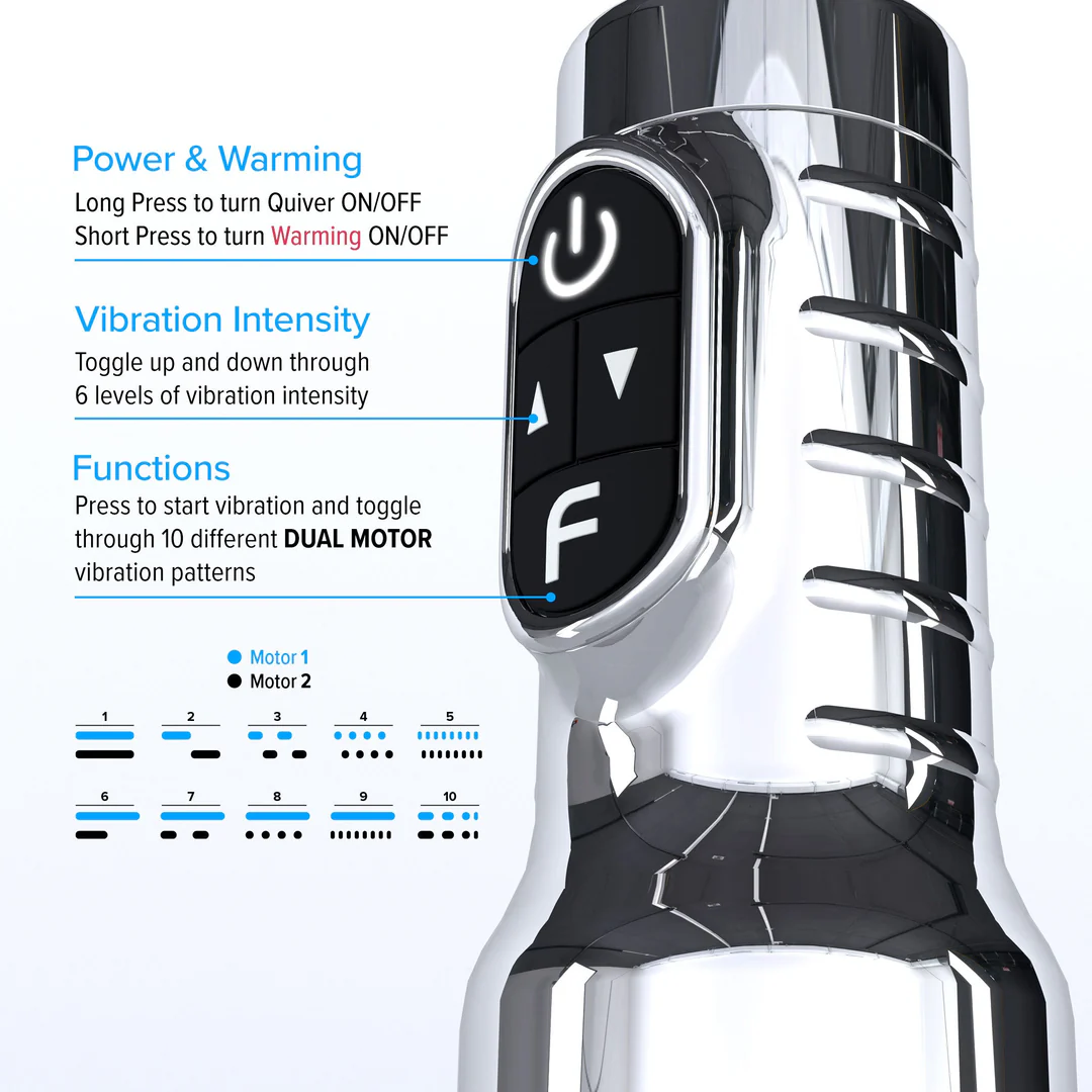 Experience the pinnacle of male pleasure technology with the Fleshlight Quiver. This isn’t just another vibrating stroker—it is a high-performance, dual-motor device engineered to adapt to your specific rhythm. Housed in a sleek, premium metallic chrome case, the Quiver combines Fleshlight’s legendary realism with next-generation innovation. Featuring integrated FleshTemp Warming Technology, this device heats the internal sleeve to a realistic body temperature at the touch of a button, creating an unbelievably lifelike experience that blurs the line between fantasy and reality.