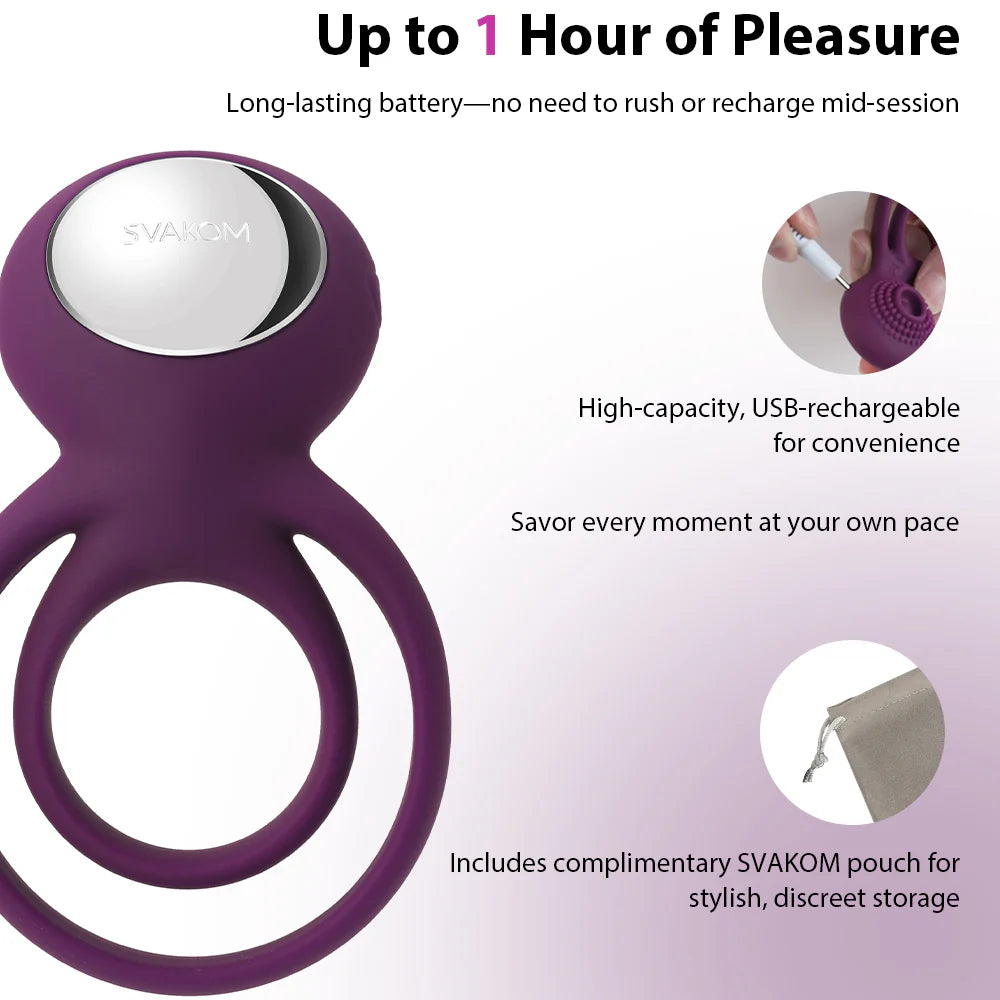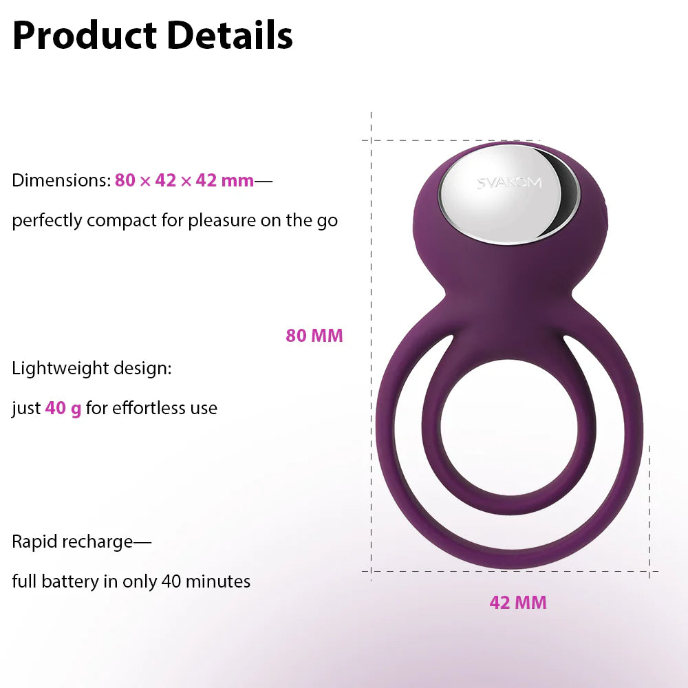 {"id":1863993393223,"title":"Svakom Tammy Double-Ring Vibrator (Authorized Dealer)","handle":"svakom-tammy-double-ring-clitoris-stimulating-couples-penis-ring-vibrator-violet","description":"\u003cp\u003e \u003c\/p\u003e\n\u003cp\u003e\u003cspan style=\"color: #ff00ff;\"\u003e\u003cstrong\u003e\u003c\/strong\u003e\u003c\/span\u003eSvakom Tammy is a double penetrator penis ring designed for your extreme pleasure! It is a cock ring \u003cem\u003e\u003cstrong\u003especifically designed for couples\u003c\/strong\u003e\u003c\/em\u003e.\u003cbr\u003e\u003cbr\u003eSVAKOM Tammy Double-Ring Clitoris Stimulating Couple's Penis Ring Vibrator has a special double penetrator penis cock rings which are not like any other products. With the second penis ring around the balls, SVAKOM Tammy Double-Ring Clitoris Stimulating Couple's Penis Ring Vibrator will bring you a whole new intensely stimulating experience.\u003cbr\u003e\u003cbr\u003e5 Vibration Modes × 5 Intensities = 25 Sensations to explore!\u003cbr\u003e\u003cbr\u003eSVAKOM Tammy Double-Ring Clitoris Stimulating Couple's Penis Ring Vibrator has a super-powerful built-in motor which allows you to enjoy 5 different vibration modes in 5 different levels of intensity. SVAKOM Tammy Double-Ring Clitoris Stimulating Couple's Penis Ring Vibrator double penetrator ultimate penis ring will bring you 25 different sensations of the stimulation.\u003cbr\u003e\u003cbr\u003eSVAKOM Tammy has a uniquely designed textured Pad to enhance your Pleasure!The body-safe silicone textured pad is perfect for enhanced clitoral stimulation during sex. The textured pad of SVAKOM Tammy Double-Ring Clitoris Stimulating Couple's Penis Ring Vibrator focuses on massaging and touching the clitoris to bring your partner the greatest pleasure and happiness.\u003cbr\u003e\u003cbr\u003eSVAKOM Tammy Double-Ring Clitoris Stimulating Couple's Penis Ring Vibrator possesses the ability to prolong a man's stamina and stimulates a woman's external erogenous zone at the same time. This special double penetrator penis ring design along with the perfect angle to stimulate the clitoris makes the experience amazingly sensual.\u003cbr\u003e\u003cbr\u003eSVAKOM Tammy Double-Ring Clitoris Stimulating Couple's Penis Ring Vibrator is splashproof of IPX4 level. IPX4 Waterproof means SVAKOM Tammy Double-Ring Clitoris Stimulating Couple's Penis Ring Vibrator is protected from splashing water, no matter the direction. When cleaning the product, clean the silicone part with floating water carefully. Due to the floating water might cause water damage of the device, please clean with a dry cloth to wipe the metal and the charging port part.\u003cbr\u003e\u003cbr\u003eAs with all quality products from SVAKOM, we are committed to protecting the environment. SVAKOM Tammy Double-Ring Clitoris Stimulating Couple's Penis Ring Vibrator is made of eco-friendly silicone and has passed all the strictest international standards before being introduced to the market.\u003cbr\u003e\u003cbr\u003eProduct Features:\u003c\/p\u003e\n\u003cul\u003e\n\u003cli\u003eDesigned specifically for couples\u003c\/li\u003e\n\u003cli\u003eDouble ring couple's vibrator-For testicles and penis\u003c\/li\u003e\n\u003cli\u003eEnhances stamina\u003c\/li\u003e\n\u003cli\u003eOne-key operation, easy to use\u003c\/li\u003e\n\u003cli\u003e25 Sensations - 5 Vibrate Modes, 5 Intensities\u003c\/li\u003e\n\u003cli\u003eSuper powerful vibration\u003c\/li\u003e\n\u003cli\u003eWhisper quiet\u003c\/li\u003e\n\u003cli\u003eTextured pad\u003c\/li\u003e\n\u003cli\u003eSplashproof design\u003c\/li\u003e\n\u003cli\u003eRechargeable battery\u003c\/li\u003e\n\u003cli\u003eEnvironmentally friendly material\u003c\/li\u003e\n\u003c\/ul\u003e\n\u003cp\u003eProduct Details:\u003c\/p\u003e\n\u003cul\u003e\n\u003cli\u003eColor: Purple\u003c\/li\u003e\n\u003cli\u003eMaterial: ABS + Body-safe silicone\u003c\/li\u003e\n\u003cli\u003eWeight (Product): 40 g (1.4 oz)\u003c\/li\u003e\n\u003cli\u003eLength (Product): 95 mm (3.7\")\u003c\/li\u003e\n\u003cli\u003eDiameter (Large Ring): 48 mm (1.9\")\u003c\/li\u003e\n\u003cli\u003eDiameter (Small Ring): 28 mm (1.1\")\u003c\/li\u003e\n\u003cli\u003eWeight (Include Package): 232 g (8.2 oz)\u003c\/li\u003e\n\u003cli\u003eHeight (Package): 145 mm (5.7\")\u003c\/li\u003e\n\u003cli\u003eWidth (Package): 120 mm (4.7\")\u003c\/li\u003e\n\u003cli\u003eDepth (Package): 58 mm (2.3\")\u003c\/li\u003e\n\u003c\/ul\u003e\n\u003cp\u003e\u003ciframe height=\"225\" width=\"400\" src=\"https:\/\/www.youtube.com\/embed\/o6epaJX0gw0\"\u003e\u003c\/iframe\u003e\u003c\/p\u003e","published_at":"2026-01-28T19:20:54+08:00","created_at":"2019-08-17T16:29:42+08:00","vendor":"Svakom","type":"Award-Winning \u0026 Famous - Svakom","tags":["Best Rechargeable Cock Ring","Cock \u0026 Ball Gear","Cock Rings","For Couples","For Us","For Us - Couples Vibrators","Rechargeable Cock Rings","svakom"],"price":8590,"price_min":8590,"price_max":8590,"available":true,"price_varies":false,"compare_at_price":12900,"compare_at_price_min":12900,"compare_at_price_max":12900,"compare_at_price_varies":false,"variants":[{"id":17899705696327,"title":"Default Title","option1":"Default Title","option2":null,"option3":null,"sku":"u4-svk-6959633133385","requires_shipping":true,"taxable":false,"featured_image":null,"available":true,"name":"Svakom Tammy Double-Ring Vibrator (Authorized Dealer)","public_title":null,"options":["Default Title"],"price":8590,"weight":280,"compare_at_price":12900,"inventory_quantity":3,"inventory_management":"shopify","inventory_policy":"deny","barcode":"6959633133385 h 85.9 tt 87 mm 129 sva flagship 109 golove 85","requires_selling_plan":false,"selling_plan_allocations":[]}],"images":["\/\/www.loveislove.com.sg\/cdn\/shop\/files\/Svakom_Tammy_Double-Ring_Vibrator_Authorized_Dealer_Award-Winning_Famous_-_Svakom_Buy_Sex_Toys_in_Singapore_LoveisLove_U4Ria.webp?v=1768559315","\/\/www.loveislove.com.sg\/cdn\/shop\/files\/1E2773FC-835D-4F0E-B1BB-66B737A713FC.webp?