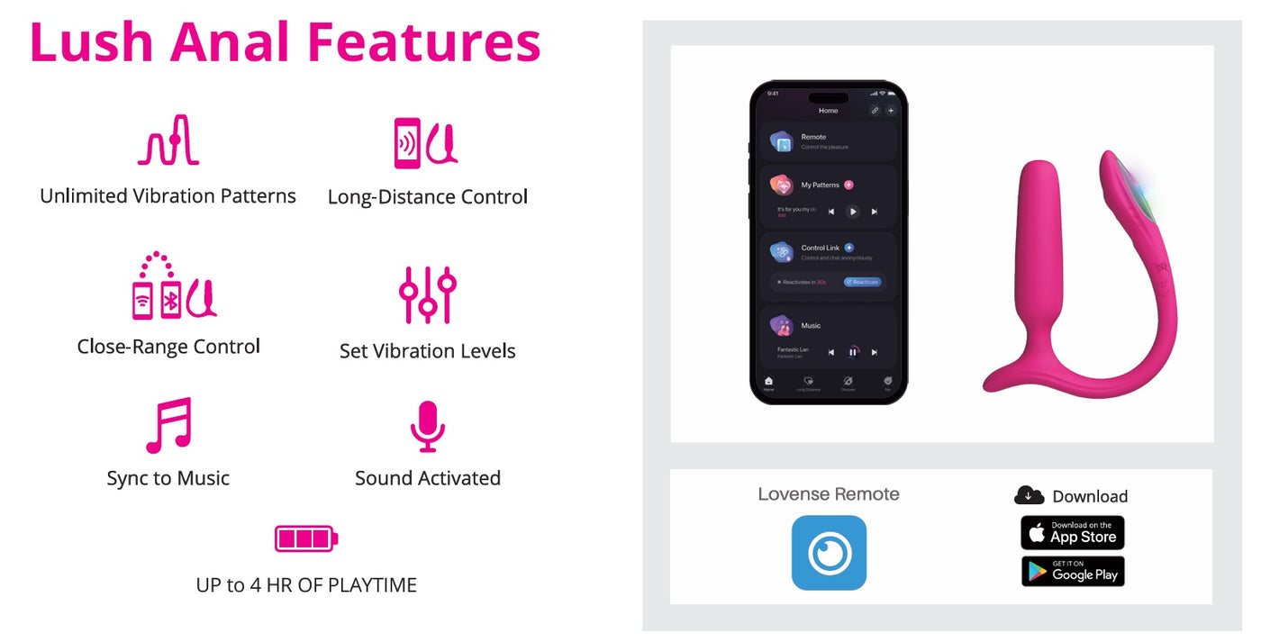 Meet Lush Anal – the powerful, discreet, and stylish anal toy designed for ultimate comfort and thrilling interactive play. Co-created with our community, Lush Anal combines the iconic, recognizable features of our best-selling Lush line with a safe, beginner-friendly design perfect for all-day wear. Whether you're a seasoned performer engaging your audience or exploring anal pleasure for the first time, Lush Anal delivers deep, powerful vibrations and a unique light-up tail that takes your experience to the next level.