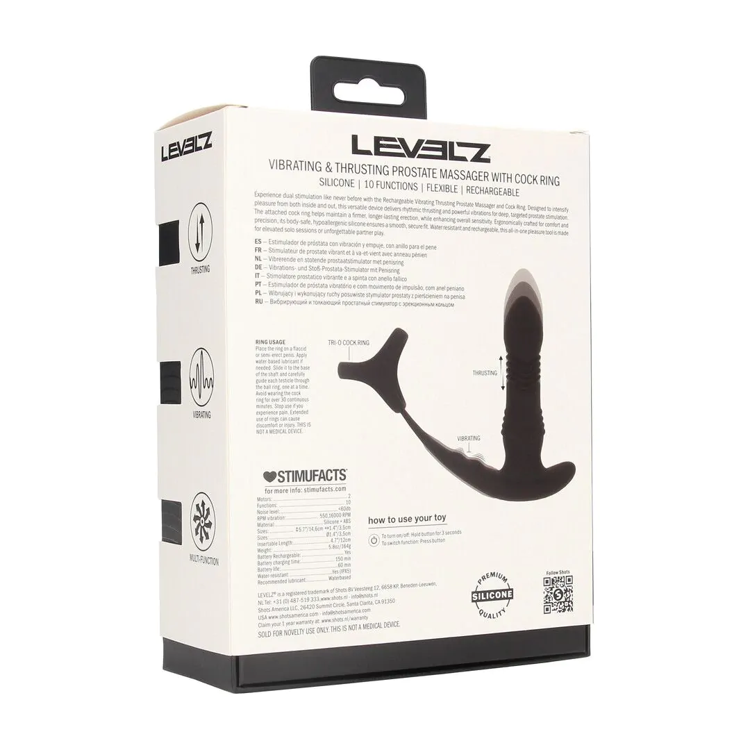 {"id":10362456998204,"title":"Shots LEVELZ Vibrating Thrusting Prostate Massager with Tri O Cockring","handle":"shots-levelz-vibrating-thrusting-prostate-massager-with-tri-o-cockring","description":"\u003ch2 data-path-to-node=\"3\"\u003eDual Stimulation Mastery: The Advanced Thrusting Harness.\u003c\/h2\u003e\n\u003cp data-path-to-node=\"4\"\u003eExperience dual stimulation like never before with the \u003cb data-path-to-node=\"4\" data-index-in-node=\"55\"\u003eLEVELZ Thrusting Prostate Massager \u0026amp; Ring\u003c\/b\u003e. Expertly designed to intensify pleasure from both inside and out, this versatile Level 3 device delivers rhythmic thrusting combined with powerful vibrations for deep, targeted prostate massage. The integrated \"Tri O\" harness features an attached cock ring that provides enhanced constriction, helping you maintain a firmer, longer-lasting erection while heightening overall sensitivity.\u003c\/p\u003e\n\u003cp data-path-to-node=\"5\"\u003eThe ergonomically crafted shaft follows the natural internal curve of your body, ensuring the thrusting motion hits the prostate with maximum precision. Driven by \u003cb data-path-to-node=\"5\" data-index-in-node=\"163\"\u003etwo high-performance motors\u003c\/b\u003e, the device offers 10 customizable vibration and thrusting modes to suit your exact pace. Crafted from premium, hypoallergenic silicone, it provides a smooth, secure fit that feels natural and body-safe. Whether for elevated solo sessions or unforgettable partner play, this all-in-one tool is built for total sensory domination.\u003c\/p\u003e\n\u003ch3 data-path-to-node=\"6\"\u003e\u003cb data-path-to-node=\"6\" data-index-in-node=\"0\"\u003eProduct Features:\u003c\/b\u003e\u003c\/h3\u003e\n\u003cul data-path-to-node=\"7\"\u003e\n\u003cli\u003e\n\u003cp data-path-to-node=\"7,0,0\"\u003e\u003cb data-path-to-node=\"7,0,0\" data-index-in-node=\"0\"\u003eActive Thrusting Motion:\u003c\/b\u003e Powerful internal mechanics deliver a rhythmic in-and-out motion for realistic prostate stimulation.\u003c\/p\u003e\n\u003c\/li\u003e\n\u003cli\u003e\n\u003cp data-path-to-node=\"7,1,0\"\u003e\u003cb data-path-to-node=\"7,1,0\" data-index-in-node=\"0\"\u003eTri O Harness Design:\u003c\/b\u003e Integrated cock ring provides superior support and constriction for erection enhancement and stability.\u003c\/p\u003e\n\u003c\/li\u003e\n\u003cli\u003e\n\u003cp data-path-to-node=\"7,2,0\"\u003e\u003cb data-path-to-node=\"7,2,0\" data-index-in-node=\"0\"\u003eDual-Motor Precision:\u003c\/b\u003e Two independent motors synchronize vibrations across the internal shaft and the base ring.\u003c\/p\u003e\n\u003c\/li\u003e\n\u003cli\u003e\n\u003cp data-path-to-node=\"7,3,0\"\u003e\u003cb data-path-to-node=\"7,3,0\" data-index-in-node=\"0\"\u003e10 Performance Modes:\u003c\/b\u003e Cycle through 10 speeds and patterns of vibration and thrusting to find your peak.\u003c\/p\u003e\n\u003c\/li\u003e\n\u003cli\u003e\n\u003cp data-path-to-node=\"7,4,0\"\u003e\u003cb data-path-to-node=\"7,4,0\" data-index-in-node=\"0\"\u003ePremium Body-Safe Silicone:\u003c\/b\u003e Silky-smooth, hypoallergenic, and non-porous material for a comfortable and secure fit.\u003c\/p\u003e\n\u003c\/li\u003e\n\u003cli\u003e\n\u003cp data-path-to-node=\"7,5,0\"\u003e\u003cb data-path-to-node=\"7,5,0\" data-index-in-node=\"0\"\u003eUSB Rechargeable:\u003c\/b\u003e Fully cord-free with a 60-minute runtime and convenient universal charging.\u003c\/p\u003e\n\u003c\/li\u003e\n\u003cli\u003e\n\u003cp data-path-to-node=\"7,6,0\"\u003e\u003cb data-path-to-node=\"7,6,0\" data-index-in-node=\"0\"\u003eFully Waterproof:\u003c\/b\u003e Completely submersible for easy cleaning and adventurous use in the bath or shower.\u003c\/p\u003e\n\u003c\/li\u003e\n\u003c\/ul\u003e\n\u003chr data-path-to-node=\"8\"\u003e\n\u003ch3 data-path-to-node=\"9\"\u003e\u003cb data-path-to-node=\"9\" data-index-in-node=\"0\"\u003eProduct Details:\u003c\/b\u003e\u003c\/h3\u003e\n\u003cul data-path-to-node=\"10\"\u003e\n\u003cli\u003e\n\u003cp data-path-to-node=\"10,0,0\"\u003e\u003cb data-path-to-node=\"10,0,0\" data-index-in-node=\"0\"\u003eColor:\u003c\/b\u003e Black\u003c\/p\u003e\n\u003c\/li\u003e\n\u003cli\u003e\n\u003cp data-path-to-node=\"10,1,0\"\u003e\u003cb data-path-to-node=\"10,1,0\" data-index-in-node=\"0\"\u003eMaterial:\u003c\/b\u003e Silicone, ABS\u003c\/p\u003e\n\u003c\/li\u003e\n\u003cli\u003e\n\u003cp data-path-to-node=\"10,2,0\"\u003e\u003cb data-path-to-node=\"10,2,0\" data-index-in-node=\"0\"\u003eWeight:\u003c\/b\u003e 164 g (\u003cb data-path-to-node=\"10,2,0\" data-index-in-node=\"15\"\u003e5.78 oz\u003c\/b\u003e)\u003c\/p\u003e\n\u003c\/li\u003e\n\u003cli\u003e\n\u003cp data-path-to-node=\"10,3,0\"\u003e\u003cb data-path-to-node=\"10,3,0\" data-index-in-node=\"0\"\u003eHeight:\u003c\/b\u003e 200 mm (\u003cb data-path-to-node=\"10,3,0\" data-index-in-node=\"16\"\u003e7.87\"\u003c\/b\u003e)\u003c\/p\u003e\n\u003c\/li\u003e\n\u003cli\u003e\n\u003cp data-path-to-node=\"10,4,0\"\u003e\u003cb data-path-to-node=\"10,4,0\" data-index-in-node=\"0\"\u003eWidth:\u003c\/b\u003e 146 mm (\u003cb data-path-to-node=\"10,4,0\" data-index-in-node=\"15\"\u003e5.75\"\u003c\/b\u003e)\u003c\/p\u003e\n\u003c\/li\u003e\n\u003cli\u003e\n\u003cp data-path-to-node=\"10,5,0\"\u003e\u003cb data-path-to-node=\"10,5,0\" data-index-in-node=\"0\"\u003eDepth:\u003c\/b\u003e 35 mm (\u003cb data-path-to-node=\"10,5,0\" data-index-in-node=\"14\"\u003e1.38\"\u003c\/b\u003e)\u003c\/p\u003e\n\u003c\/li\u003e\n\u003cli\u003e\n\u003cp data-path-to-node=\"10,6,0\"\u003e\u003cb data-path-to-node=\"10,6,0\" data-index-in-node=\"0\"\u003eDiameter:\u003c\/b\u003e 35 mm (\u003cb data-path-to-node=\"10,6,0\" data-index-in-node=\"17\"\u003e1.38\"\u003c\/b\u003e)\u003c\/p\u003e\n\u003c\/li\u003e\n\u003cli\u003e\n\u003cp data-path-to-node=\"10,7,0\"\u003e\u003cb data-path-to-node=\"10,7,0\" data-index-in-node=\"0\"\u003eInsertable Length:\u003c\/b\u003e 120 mm (\u003cb data-path-to-node=\"