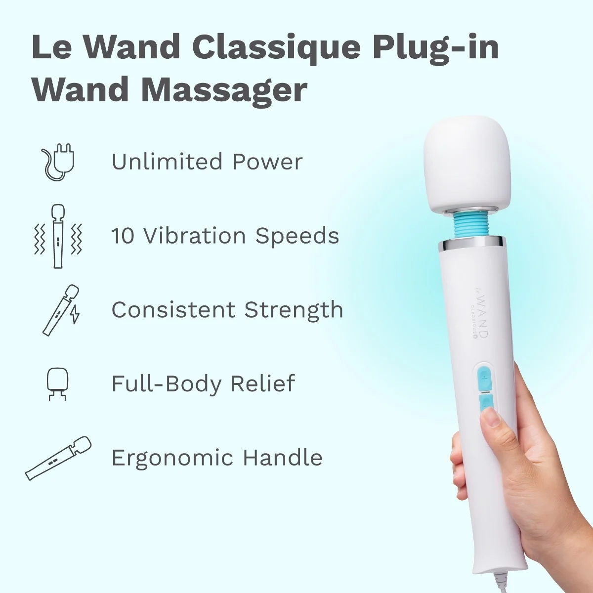{"id":10373452890428,"title":"Le Wand Classique Original Plug-In Corded Wand Massager","handle":"le-wand-classique-plug-in-original-vibrating-massager","description":"\u003cp data-path-to-node=\"3\"\u003e\u003cspan style=\"text-decoration: underline;\"\u003e\u003cem\u003e\u003cstrong\u003e\u003cspan style=\"color: rgb(255, 0, 255); font-size: 0.875rem; text-decoration: underline;\"\u003eNote: For your peace of mind and safety, a local adaptor with the \"Safety Mark\" will be provided.\u003c\/span\u003e\u003c\/strong\u003e\u003c\/em\u003e\u003c\/span\u003e\u003c\/p\u003e\n\u003ch2 data-path-to-node=\"5\"\u003eNon-Stop Power: The Le Wand Classique Plug-In Original Massager.\u003c\/h2\u003e\n\u003cp data-path-to-node=\"6\"\u003eThe \u003cb data-path-to-node=\"6\" data-index-in-node=\"4\"\u003eLe Wand Classique Plug-In Original\u003c\/b\u003e is built for those who demand limitless power without the wait. This ultra-quiet dynamo delivers consistent, high-performance vibrations directly from your wall outlet. Featuring Le Wand’s signature soft, flat silicone head and a flexible neck, it targets every muscle group with precision, making it an essential tool for both therapeutic relief and intense exploration.\u003c\/p\u003e\n\u003cp data-path-to-node=\"7\"\u003eWith 10 deep, rumbly speeds, this massager provides muscle penetration that remains steady throughout your entire session. No charging and no batteries—just pure, uninterrupted power. The extra-long 2.5-meter cord ensures you have plenty of room to move, while the lightweight construction and travel lock feature make it a versatile companion for self-care.\u003c\/p\u003e\n\u003ch3 data-path-to-node=\"8\"\u003e\u003cb data-path-to-node=\"8\" data-index-in-node=\"0\"\u003eProduct Features:\u003c\/b\u003e\u003c\/h3\u003e\n\u003cul data-path-to-node=\"9\"\u003e\n\u003cli\u003e\n\u003cp data-path-to-node=\"9,0,0\"\u003e\u003cb data-path-to-node=\"9,0,0\" data-index-in-node=\"0\"\u003eContinuous Plug-In Power:\u003c\/b\u003e Enjoy unlimited playtime with consistent intensity that never fades.\u003c\/p\u003e\n\u003c\/li\u003e\n\u003cli\u003e\n\u003cp data-path-to-node=\"9,1,0\"\u003e\u003cb data-path-to-node=\"9,1,0\" data-index-in-node=\"0\"\u003e10 Rumbly Intensities:\u003c\/b\u003e Easily cycle through 10 deep vibration levels with an intuitive two-button control.\u003c\/p\u003e\n\u003c\/li\u003e\n\u003cli\u003e\n\u003cp data-path-to-node=\"9,2,0\"\u003e\u003cb data-path-to-node=\"9,2,0\" data-index-in-node=\"0\"\u003eSoft \u0026amp; Flat Silicone Head:\u003c\/b\u003e Specifically shaped for targeted relief and broad-surface stimulation.\u003c\/p\u003e\n\u003c\/li\u003e\n\u003cli\u003e\n\u003cp data-path-to-node=\"9,3,0\"\u003e\u003cb data-path-to-node=\"9,3,0\" data-index-in-node=\"0\"\u003eExtra Long 2.5M Cord:\u003c\/b\u003e Provides 8.2 feet of reach for comfort and flexibility in any position.\u003c\/p\u003e\n\u003c\/li\u003e\n\u003cli\u003e\n\u003cp data-path-to-node=\"9,4,0\"\u003e\u003cb data-path-to-node=\"9,4,0\" data-index-in-node=\"0\"\u003eFlexible Neck:\u003c\/b\u003e Contours to your body’s natural curves for better pressure application.\u003c\/p\u003e\n\u003c\/li\u003e\n\u003cli\u003e\n\u003cp data-path-to-node=\"9,5,0\"\u003e\u003cb data-path-to-node=\"9,5,0\" data-index-in-node=\"0\"\u003eWhisper Quiet:\u003c\/b\u003e High-performance motor operates at ≤68dB for discreet relaxation.\u003c\/p\u003e\n\u003c\/li\u003e\n\u003cli\u003e\n\u003cp data-path-to-node=\"9,6,0\"\u003e\u003cb data-path-to-node=\"9,6,0\" data-index-in-node=\"0\"\u003eTravel-Ready:\u003c\/b\u003e Includes a built-in travel lock to prevent accidental activation in your luggage.\u003c\/p\u003e\n\u003c\/li\u003e\n\u003cli\u003e\n\u003cp data-path-to-node=\"9,7,0\"\u003e\u003cb data-path-to-node=\"9,7,0\" data-index-in-node=\"0\"\u003eUser Guide Included:\u003c\/b\u003e Comes with clear instructions for optimal use and care.\u003c\/p\u003e\n\u003c\/li\u003e\n\u003c\/ul\u003e\n\u003chr data-path-to-node=\"10\"\u003e\n\u003ch3 data-path-to-node=\"11\"\u003e\u003cb data-path-to-node=\"11\" data-index-in-node=\"0\"\u003eProduct Details:\u003c\/b\u003e\u003c\/h3\u003e\n\u003cul data-path-to-node=\"12\"\u003e\n\u003cli\u003e\n\u003cp data-path-to-node=\"12,0,0\"\u003e\u003cb data-path-to-node=\"12,0,0\" data-index-in-node=\"0\"\u003eColor:\u003c\/b\u003e White\u003c\/p\u003e\n\u003c\/li\u003e\n\u003cli\u003e\n\u003cp data-path-to-node=\"12,1,0\"\u003e\u003cb data-path-to-node=\"12,1,0\" data-index-in-node=\"0\"\u003eMaterial:\u003c\/b\u003e Body Safe Silicone, ABS\u003c\/p\u003e\n\u003c\/li\u003e\n\u003cli\u003e\n\u003cp data-path-to-node=\"12,2,0\"\u003e\u003cb data-path-to-node=\"12,2,0\" data-index-in-node=\"0\"\u003eWeight:\u003c\/b\u003e 782 g (\u003cb data-path-to-node=\"12,2,0\" data-index-in-node=\"15\"\u003e27.58 oz\u003c\/b\u003e)\u003c\/p\u003e\n\u003c\/li\u003e\n\u003cli\u003e\n\u003cp data-path-to-node=\"12,3,0\"\u003e\u003cb data-path-to-node=\"12,3,0\" data-index-in-node=\"0\"\u003eHeight:\u003c\/b\u003e 328 mm (\u003cb data-path-to-node=\"12,3,0\" data-index-in-node=\"16\"\u003e12.91\"\u003c\/b\u003e)\u003c\/p\u003e\n\u003c\/li\u003e\n\u003cli\u003e\n\u003cp data-path-to-node=\"12,4,0\"\u003e\u003cb data-path-to-node=\"12,4,0\" data-index-in-node=\"0\"\u003eWidth:\u003c\/b\u003e 63 mm (\u003cb data-path-to-node=\"12,4,0\" data-index-in-node=\"14\"\u003e2.48\"\u003c\/b\u003e)\u003c\/p\u003e\n\u003c\/li\u003e\n\u003cli\u003e\n\u003cp data-path-to-node=\"12,5,0\"\u003e\u003cb data-path-to-node=\"12,5,0\" data-index-in-node=\"0\"\u003eDepth:\u003c\/b\u003e 63 mm (\u003cb data-path-to-node=\"12,5,0\" data-index-in-node=\"14\"\u003e2.48\"\u003c\/b\u003e)\u003c\/p\u003e\n\u003c\/li\u003e\n\u003cli\u003e\n\u003cp data-path-to-node=\"12,6,0\"\u003e\u003cb data-path-to-node=\"12,6,0\" data-index-in-node=\"0\"\u003eCord Length:\u003c\/b\u003e 2.5 m (\u003cb data-path-to-node=\"12,6,0\" data-index-in-node=\"20\"\u003e8.2 ft\u003c\/b\u003e)\u003c\/p\u00