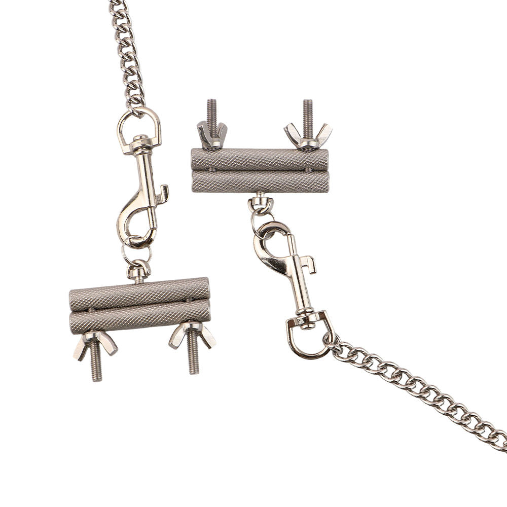 {"id":10176999915836,"title":"Adjustable Textured Steel Nipple Clamps with Detachable Cuffs","handle":"adjustable-textured-steel-nipple-clamps-with-detachable-cuffs","description":"\u003cp\u003e\u003cstrong\u003eBind your partner and restrict them in breathless pleasure\u003c\/strong\u003e with this adjustable bondage set. This system includes a set of textured steel nipple clamps and two detachable restraint cuffs, creating a dynamic link between sensual bondage and exquisite pain. Attach the clamps to nipples, labia, testicles, or any sensitive body part for a powerful sensory experience.\u003c\/p\u003e\n\u003cp\u003e\u003cstrong\u003eOnce connected to the cuffs, \u003c\/strong\u003eevery movement will tug on the clamps, forcing your sub to stay still or suffer the consequences of increased pressure and intense sensation.\u003c\/p\u003e\n\u003cp\u003e\u003cstrong\u003eProduct Features:\u003c\/strong\u003e\u003c\/p\u003e\n\u003cul\u003e\n\u003cli\u003eMovement-Activated Sensation: Cuffs are linked to clamps by a chain, intensifying pressure with every move for irresistible restraint.\u003c\/li\u003e\n\u003cli\u003eAdjustable Pressure Clamps: Features nut screws to easily adjust and secure the perfect amount of pressure on the chosen sensitive area.\u003c\/li\u003e\n\u003cli\u003eVersatile Application: Clamps can be used on nipples, labia, testicles, or any area where a good grip can be achieved.\u003c\/li\u003e\n\u003cli\u003eTextured Steel: Clamps are made from durable, textured metal for secure grip and enhanced sensation.\u003c\/li\u003e\n\u003cli\u003eComplete Restraint Set: Includes two restraint cuffs and a set of adjustable steel nipple clamps with a connecting chain.\u003c\/li\u003e\n\u003c\/ul\u003e\n\u003cp\u003e\u003cstrong\u003eProduct Details:\u003c\/strong\u003e\u003c\/p\u003e\n\u003cul\u003e\n\u003cli\u003eColor: Black\u003cbr\u003e\n\u003c\/li\u003e\n\u003cli\u003eMaterial: Metal, PU Leather\u003cbr\u003e\n\u003c\/li\u003e\n\u003cli\u003eWeight: 278 g (9.8 oz)\u003cbr\u003e\n\u003c\/li\u003e\n\u003cli\u003eClamp Width: 50mm (2.0\")\u003cbr\u003e\n\u003c\/li\u003e\n\u003cli\u003eClamp Thickness: 8mm (0.3\")\u003cbr\u003e\n\u003c\/li\u003e\n\u003cli\u003eClamp Max Opening: 14.5mm (0.6\")\u003cbr\u003e\n\u003c\/li\u003e\n\u003cli\u003eCuff Length: 320mm (12.6\")\u003cbr\u003e\n\u003c\/li\u003e\n\u003cli\u003eChain Length: 350mm (13.8\")\u003c\/li\u003e\n\u003c\/ul\u003e\n\u003cp\u003e\u003cstrong\u003ePackage Details:\u003c\/strong\u003e\u003c\/p\u003e\n\u003cul\u003e\n\u003cli\u003eWeight: 320 g (11.3 oz)\u003cbr\u003e\n\u003c\/li\u003e\n\u003cli\u003eHeight: 150 mm (5.9\")\u003cbr\u003e\n\u003c\/li\u003e\n\u003cli\u003eLength: 100 mm (3.9\")\u003cbr\u003e\n\u003c\/li\u003e\n\u003cli\u003eWidth: 60 mm (2.4\")\u003c\/li\u003e\n\u003c\/ul\u003e\n\u003cp\u003e\u003cspan style=\"text-decoration: underline;\"\u003e\u003cstrong\u003eIMPORTANT DISCLAIMER\u003c\/strong\u003e\u003c\/span\u003e\u003cbr\u003e\u003cem\u003ePlease choose your items carefully, as we cannot process refunds or exchanges for any products, used or unused, due to change of mind - for health, hygiene and safety reasons.\u003c\/em\u003e\u003cbr\u003e\u003cem\u003eWe are unable to provide a satisfaction guarantee or refund\/replace products that don't meet individual expectations. Product efficacy varies based on personal conditions, preferences, and other factors. Please understand that results will differ for each user.\u003c\/em\u003e\u003cbr\u003e\u003cem\u003eDimensions are approximate and may vary slightly due to manufacturing tolerances and measurement methods.\u003c\/em\u003e\u003cbr\u003e\u003cem\u003eThese products are sold as novelty items only. U4Ria\/Love is Love is not responsible for any injuries or damages resulting from their use or misuse.\u003c\/em\u003e\u003cbr\u003e\u003cem\u003eErrors and Omissions Excepted.\u003c\/em\u003e\u003c\/p\u003e","published_at":"2025-10-07T19:59:12+08:00","created_at":"2025-10-07T19:53:57+08:00","vendor":"FAAK","type":"Nipple Toys - Nipple Clamps","tags":["Bedroom Bondage Kits","Bondage - Medical Fetish","Bondage Kits","For Her","Nipple Clamps","Nipple Jewellery","Nipple Toys","Nipple Toys - Nipple Clamps","Quarterly New Launch","Women's Fetish Wear"],"price":9990,"price_min":9990,"price_max":9990,"available":true,"price_varies":false,"compare_at_price":11990,"compare_at_price_min":11990,"compare_at_price_max":11990,"compare_at_price_varies":false,"variants":[{"id":52268102680892,"title":"Default Title","option1":"Default Title","option2":null,"option3":null,"sku":"u4-FAAK-QK-C8150","requires_shipping":true,"taxable":false,"featured_image":null,"available":true,"name":"Adjustable Textured Steel Nipple Clamps with Detachable Cuffs","public_title":null,"options":["Default Title"],"price":9990,"weight":300,"compare_at_price":11990,"inventory_quantity":1,"inventory_management":"shopify","inventory_policy":"deny","barcode":"QK-C8150","requires_selling_plan":false,"selling_plan_allocations":[]}],"images":["\/\/www.loveislove.com.sg\/cdn\/shop\/files\/Adjustable_Textured_Steel_Nipple_Clamps_with_Detachable_Cuffs.jpg?v=1759908895","\/\/www.loveislove.com.sg\/cdn\/shop\/files\/Adjustable_Textured_Steel_Nipple_Clamps_with_Detachable_Cuffs_1.jpg?v=1759908911","\/\/www.loveislove.com.sg\/cdn\/shop\/files\/Adjustable_Textured_Steel_Nipple_Clamps_with_Detachable_Cuffs_2.avif?v=1759908962","\/\/www.loveislove.com.sg\/cdn\/shop\/files\/Adjustable_Textured_Steel_Nipple_Clamps_with_Detachable_Cuffs3.jpg?v=1759908983","\/\/www.loveislove.com.sg\/cdn\/shop\/files\/Adjustable_Textured_Steel_Nipple_Clamps_with_Detachable_Cuffs4.jpg?v=1759908978","\/\/www.loveislove.com.sg\/cdn\/shop\/files\/Adjustable_Textured_Steel_Nipple_Clamps_with_Detachable_Cuffs5.jpg?v=1759908992","\/\/www.loveislove.com.sg\/cdn\/shop\/files\/Adjustable_Textured_Steel_Nipple_Clamps_with_Detachable_Cuffs_5.avif?v=1759909000","\/\/www.loveislove.com.sg\/cdn\/shop\/files\/Adjustable_Textured_Steel_Nipple_Clamps_wit